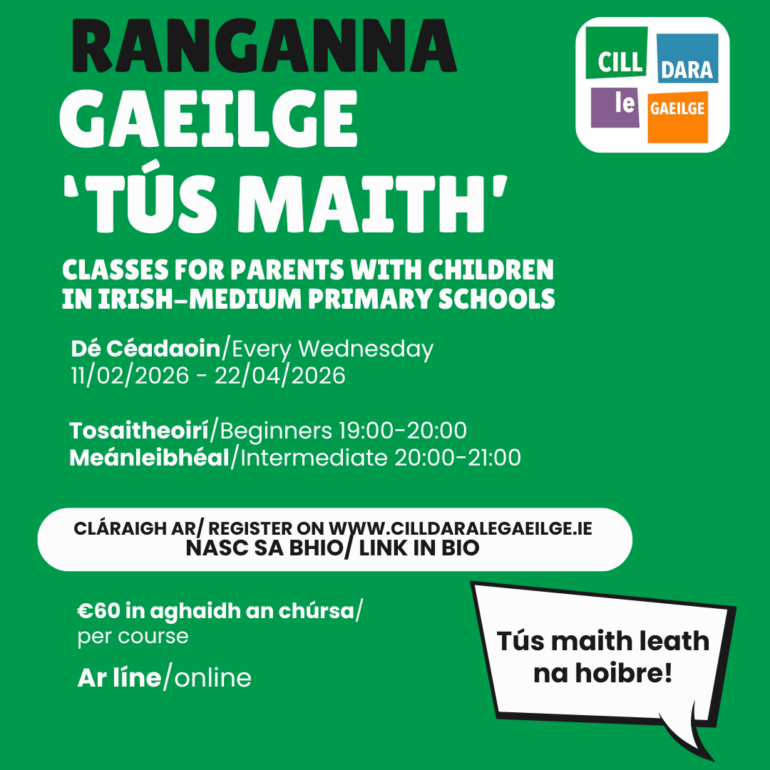 Tuilleagh eolais/Information from: fia@cilldaralegaeilge.ie