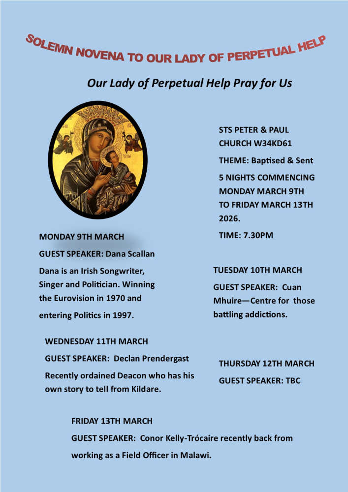 School Mass, Friday, 27th February at 11am, Cill Mhuire, Newbridge.