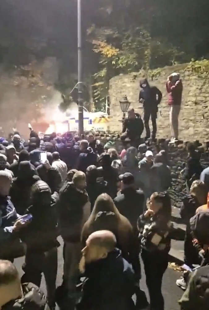 Some people can also be seen throwing glass objects at members of the Public Order Unit.