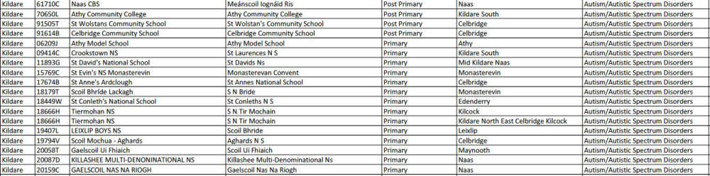 The full list of Kildare schools to receive additional special education classes in the 2026/27 academic year can be seen below: